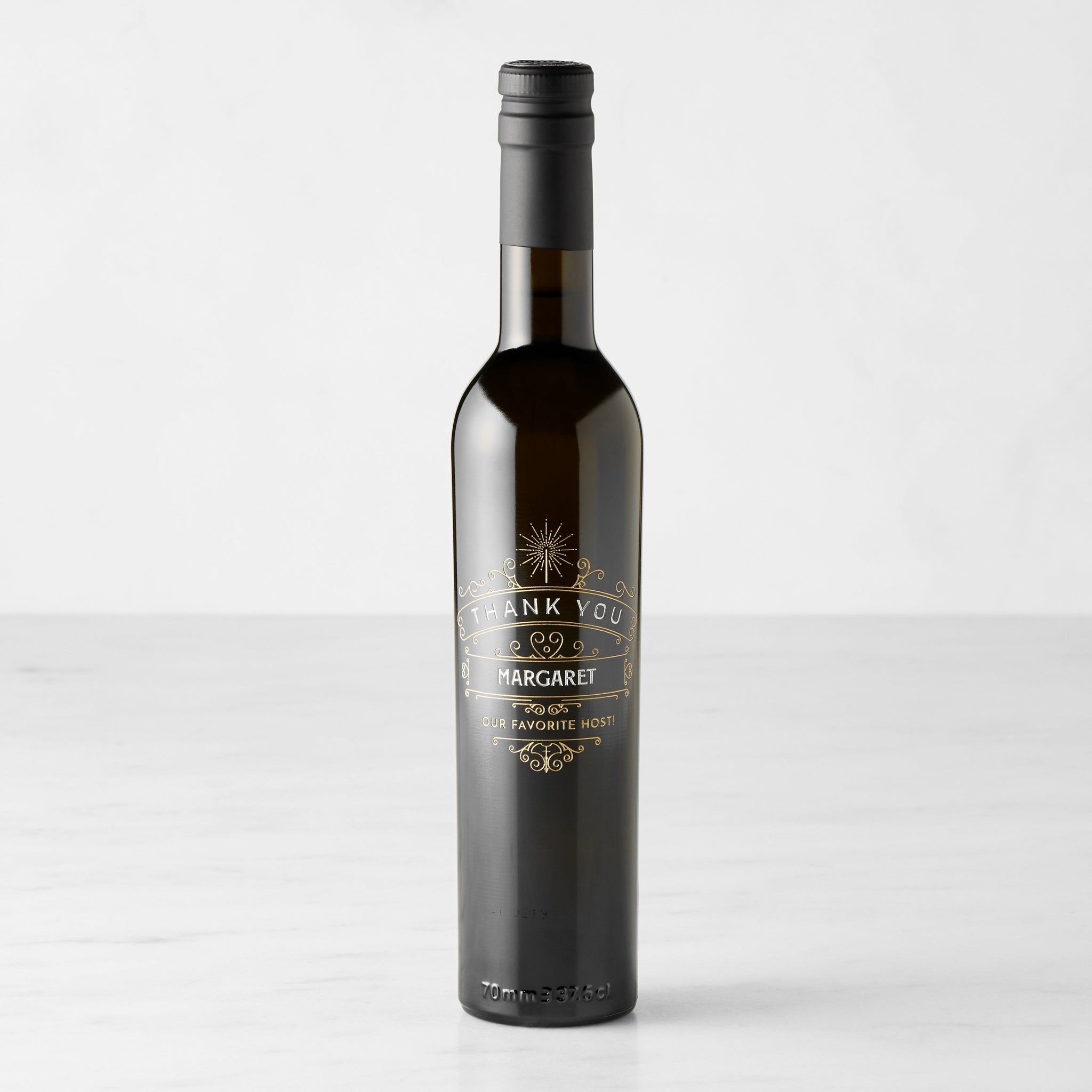 Make the gift of premium California olive oil and balsamic vinegar even better with our personalized selections, presented in bottles that are individually etched and hand painted. And for an extra-special touch, you can customize each one with a unique message. A wonderful way to delight family and friends, these exceptional options also add festive style to your own celebrations. And after the oil and vinegar are gone, the etched bottles can be refilled as a keepsake bottle that will evoke happy memories for years to come.